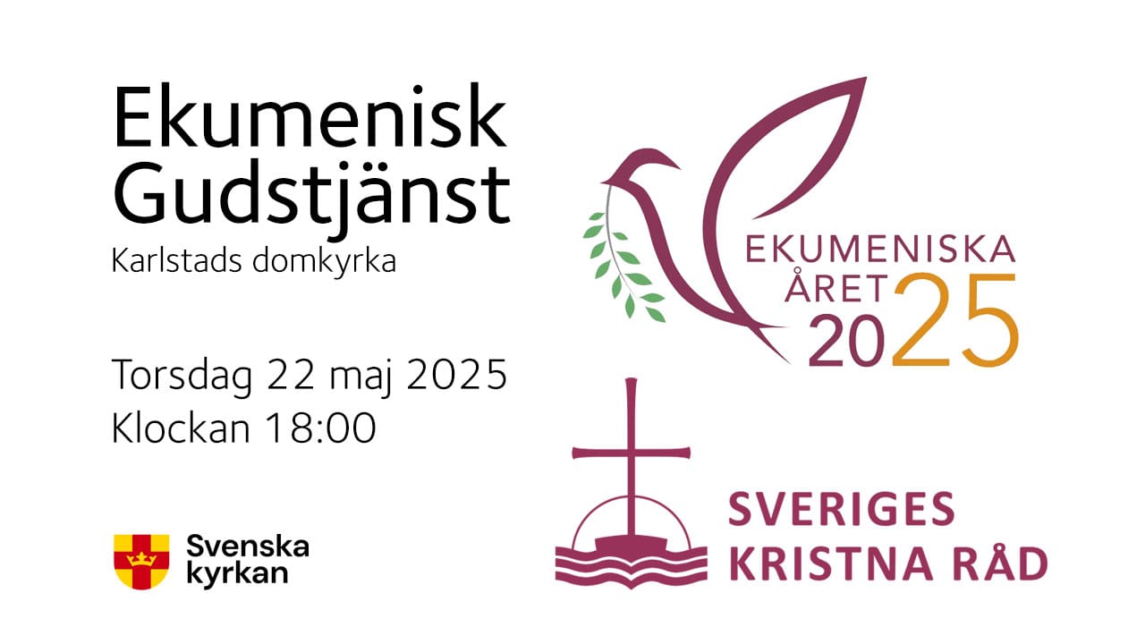 Gudstjänsten arrangeras av Ekumeniska rådet i Karlstad med anledning av Sveriges Kristna Råds årshögtid i Karlstad. Medverkar gör bl.a. Ärkebsiakop Martin Modéus, Svenska kyrkan, Kyrkoledare Karin Wiborn, Equmeniakyrkan, Broder Pierre-André Mauduit, Katolska kyrkan, Fader Suleyman Wannes, Syrisk-orotodoxa kyrkan, Biskop Sören Dalevi, Domprost Dan Fredriksson, Pastor Sam Wohlin, Pingstkyrkan, Pastor Per-Ulrik Johansson, Equmeniakyrkan m.fl.
