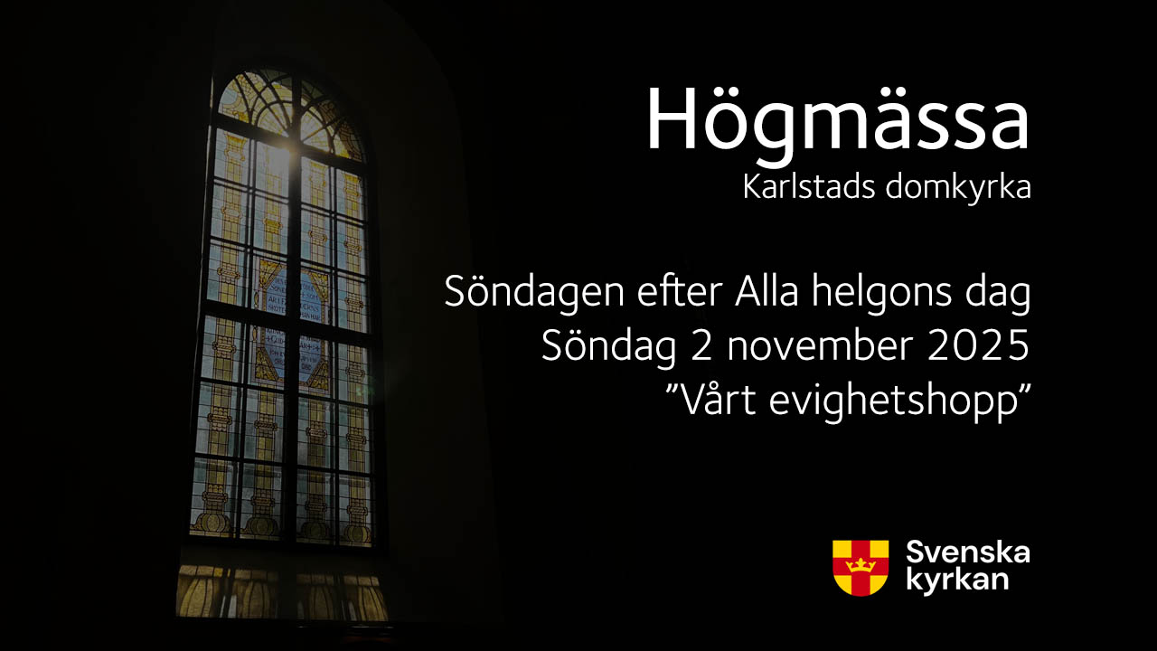 Högmässa på Söndagen efter alla helgons dag 2 november, från domkyrkan i Karlstad. Dagens rubrik: ”Vårt evighetshopp”. Medverkande: Domkyrkokaplan Anna Bohlin, domkyrkolektor Ewa Lindqvist Hotz, diakon My Andrén, domkyrkoorganist Jörgen Martinson, Frimurarkören under ledning av Sebastian Junling samt domkyrkans kyrkvärdar och kyrkvaktmästare.