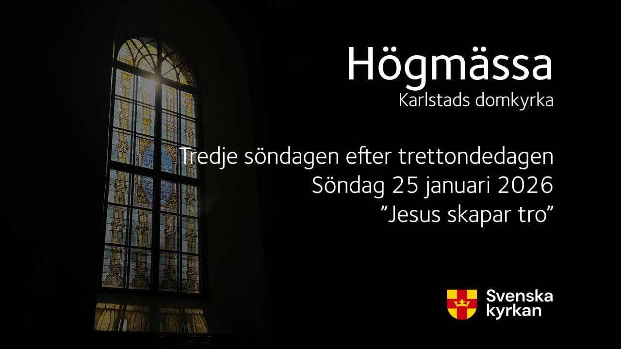 Högmässa på Tredje söndagen efter Trettondedagen 25 januari, från domkyrkan i Karlstad. Dagens rubrik: ”Jesus skapar tro”. Medverkande: Domprost Dan Fredriksson, domkyrkolektor Ewa Lindqvist Hotz, diakon My Andrén, sång och organist Unn Jörgensdotter Wing samt domkyrkans kyrkvärdar och kyrkvaktmästare.