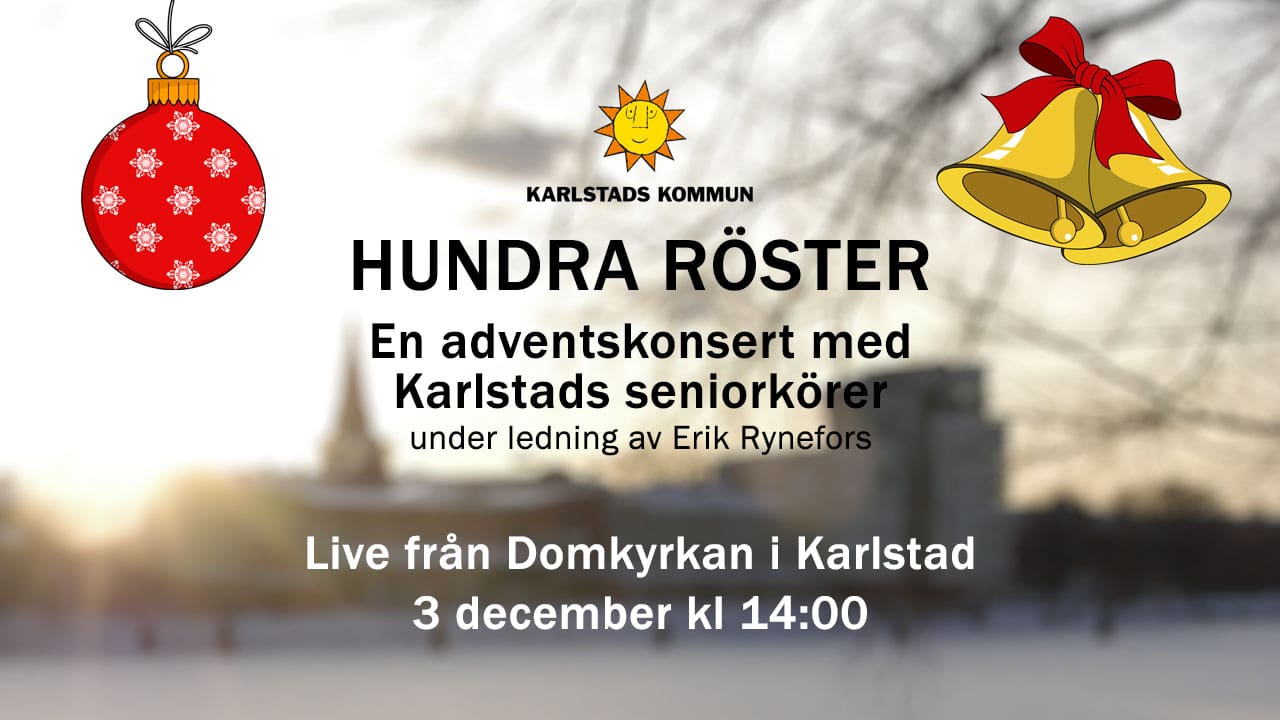 Adventskonsert i Karlstads domkyrka från 3 december 2025. Hundra röster består av sångare från:
