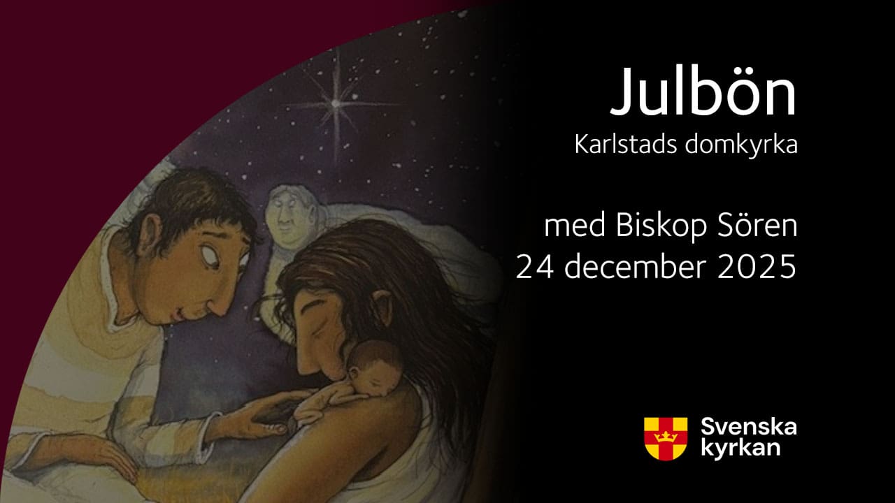Julbön med Biskop Sören 24 december, från domkyrkan i Karlstad. Medverkande: Biskop Sören Dalevi, kantor Tomas Bergström, sång Linnéa Sjöstedt, gitarr Theo Nyrén, bibelläsning Kajsa Engkvist samt domkyrkans kyrkvärdar och kyrkvaktmästare.