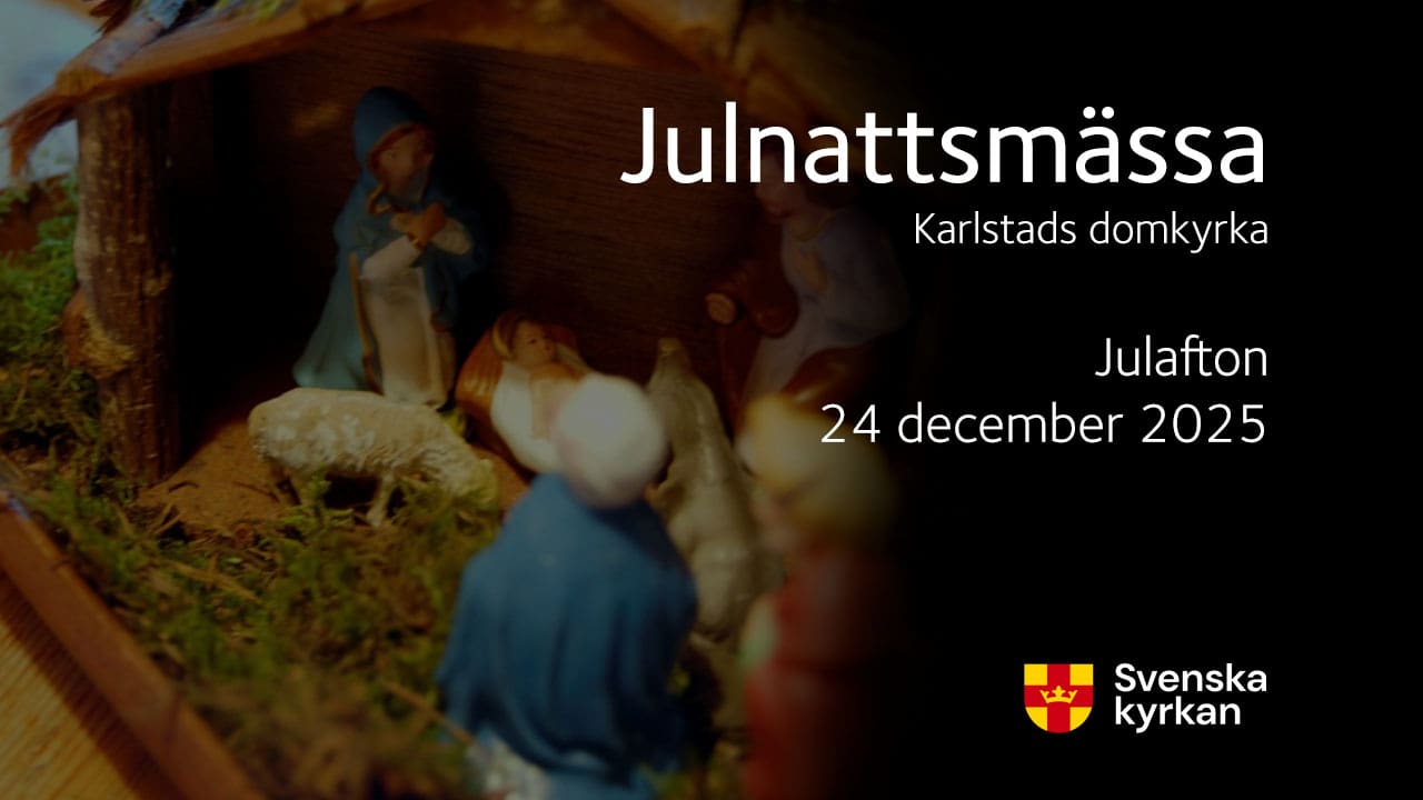 Julnattsmässa 24 december, från domkyrkan i Karlstad. Medverkande: Domkyrkolektor Ewa Lindqvist Hotz, domkyrkokaplan Anna Bohlin, domkyrkoorganist Jörgen Martinson, organist Unn Jörgensdotter Wing, domkyrkokantor Tomas Bergström, Julkören samt domkyrkans kyrkvärdar och kyrkvaktmästare.